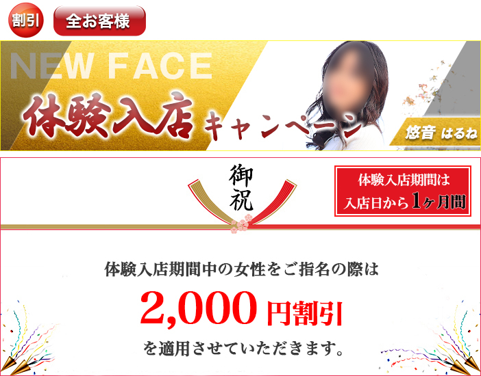 ご新規様、リピーター様に限らずご案内時には、女性による確認とお願いをさせていただく場合がございます。